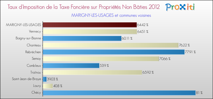 A noter : la valeur moyenne de ce taux de taxe foncière sur le non bâti dans les communes françaises similaires à Marigny-les-Usages était de 45.84 %, en 2012.