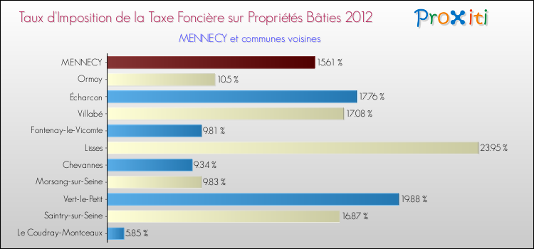 A noter : la valeur moyenne de ce taux de taxe foncière sur le bâti dans les communes françaises similaires à Mennecy était de 22.96 %, en 2012.