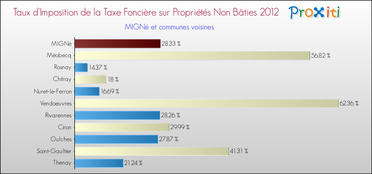 En 2012, le taux de la taxe foncière sur le non bâti vôté par le conseil municipal de Migné était de : 28.33 %.