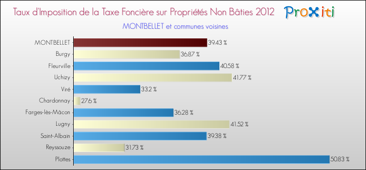 En 2012, le taux de la taxe foncière sur le non bâti vôté par le conseil municipal de Montbellet était de : 39.43 %.