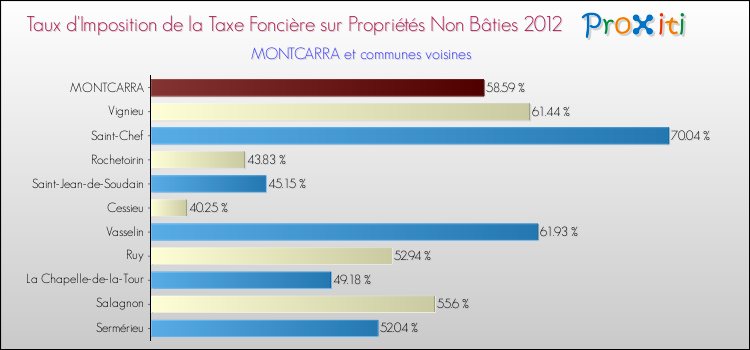 A Montcarra, le taux de taxe foncière sur le non bâti a donc augmenté de 30.84 % entre 2000 et 2012.