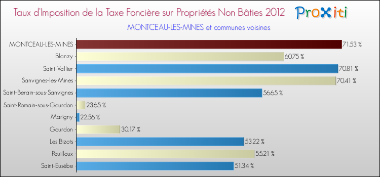 En 2012, le taux de la taxe foncière sur le non bâti vôté par le conseil municipal de Montceau-les-Mines était de : 71.53 %.