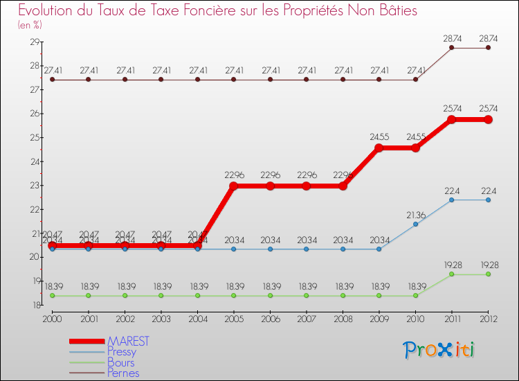 A Marest, le taux de taxe foncière sur le non bâti a donc augmenté de 25.74 % entre 2000 et 2012.