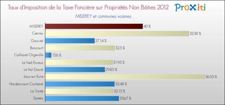 En 2012, le taux de la taxe foncière sur le non bâti vôté par le conseil municipal de Miserey était de : 40 %.