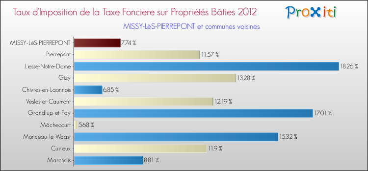 A noter : la valeur moyenne de ce taux de taxe foncière sur le bâti dans les communes françaises similaires à Missy-lès-Pierrepont était de 10.09 %, en 2012.