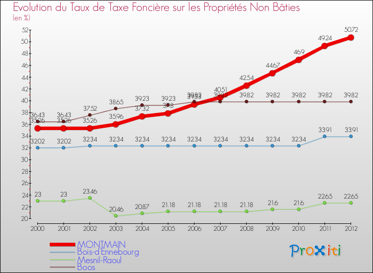 A Montmain, le taux de taxe foncière sur le non bâti a donc augmenté de 43.85 % entre 2000 et 2012.