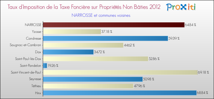 En 2012, le taux de la taxe foncière sur le non bâti vôté par le conseil municipal de Narrosse était de : 64.84 %.