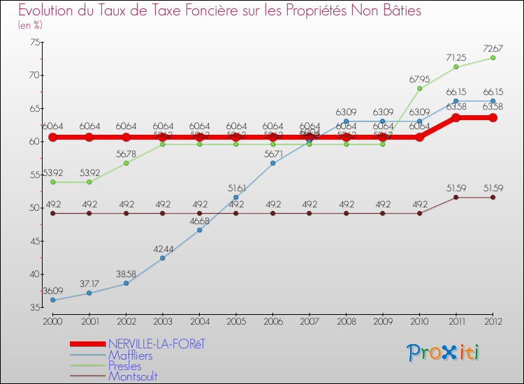 A Nerville-la-Forêt, le taux de taxe foncière sur le non bâti a donc augmenté de 4.85 % entre 2000 et 2012.