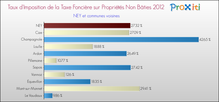 Pendant la même période, les communes françaises similaires à Ney, ont vu leur taux de taxe foncière sur le non bâti augmenter de 14.97 % en moyenne entre 2000 et 2012.