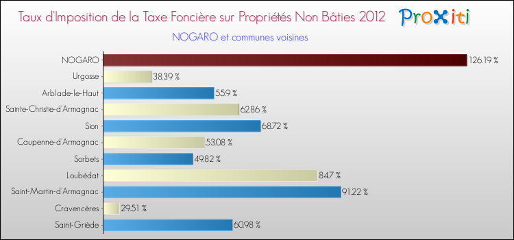 Comparaison des taux d'imposition de la taxe foncière sur les immeubles et terrains non batis 2012 pour NOGARO et les communes voisines