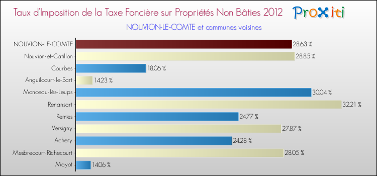 En 2012, le taux de la taxe foncière sur le non bâti vôté par le conseil municipal de Nouvion-le-Comte était de : 28.63 %.