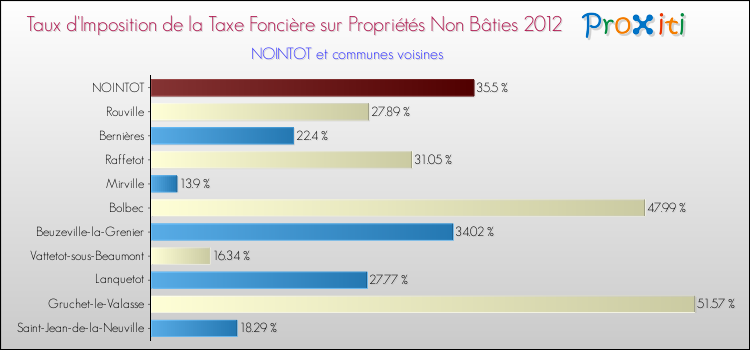 A noter : la valeur moyenne de ce taux de taxe foncière sur le non bâti dans les communes françaises similaires à Nointot était de 45.84 %, en 2012.