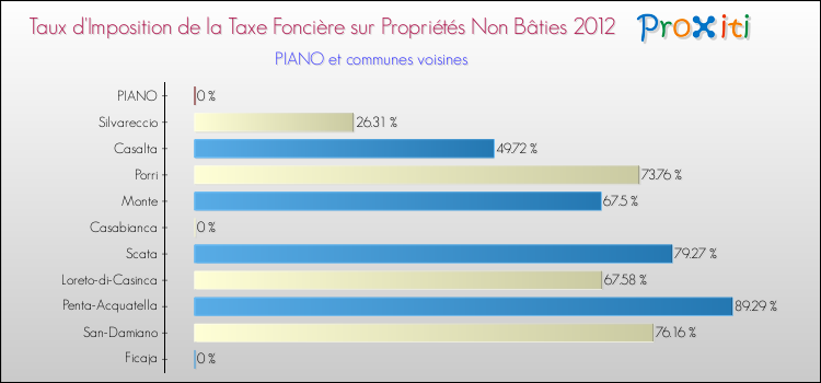 En 2012, le taux de la taxe foncière sur le non bâti vôté par le conseil municipal de Piano était de : 0 %.