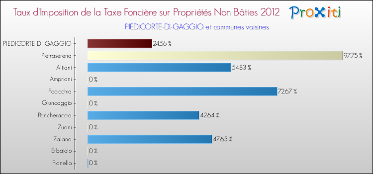 En 2012, le taux de la taxe foncière sur le non bâti vôté par le conseil municipal de Piedicorte-di-Gaggio était de : 24.56 %.