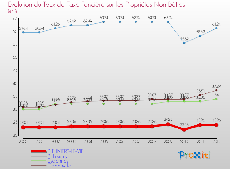 En 2012, le taux de la taxe foncière sur le non bâti vôté par le conseil municipal de Pithiviers-le-Vieil était de : 23.96 %.
