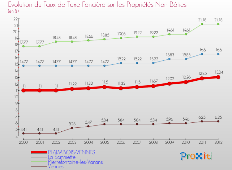 A Plaimbois-Vennes, le taux de taxe foncière sur le non bâti a donc augmenté de 18.55 % entre 2000 et 2012.