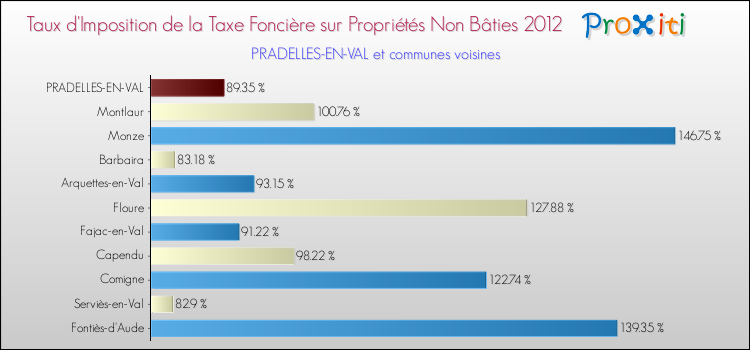 En 2012, le taux de la taxe foncière sur le non bâti vôté par le conseil municipal de Pradelles-en-Val était de : 89.35 %.