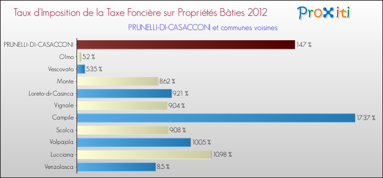 A noter : la valeur moyenne de ce taux de taxe foncière sur le bâti dans les communes françaises similaires à Prunelli-di-Casacconi était de 12.94 %, en 2012.