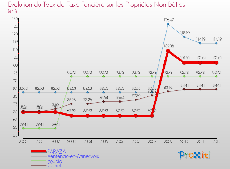 A Paraza, le taux de taxe foncière sur le non bâti a donc augmenté de 45.16 % entre 2000 et 2012.