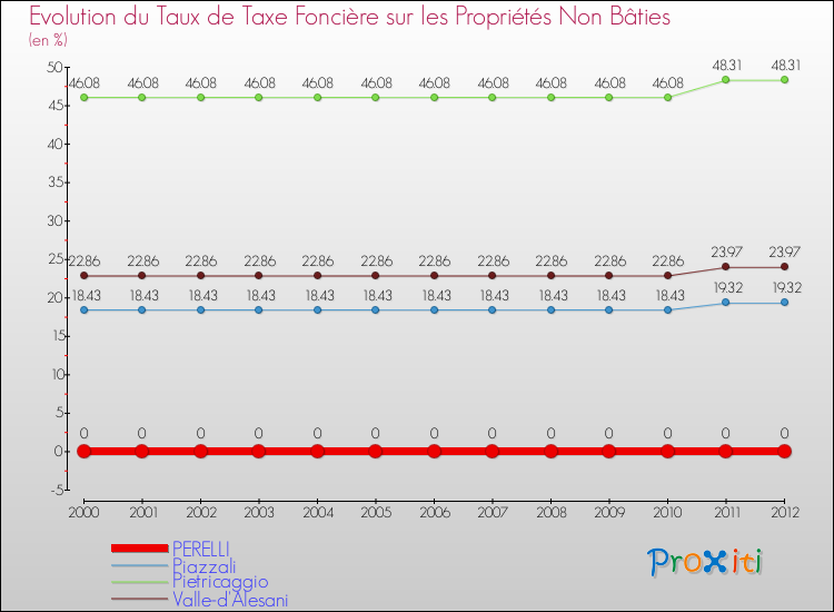 En 2012, le taux de la taxe foncière sur le non bâti vôté par le conseil municipal de Perelli était de : 0 %.