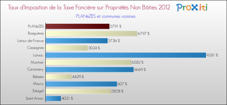 Vous trouverez ci-dessous des graphiques qui vous permettent de situer le taux de la taxe foncière sur le non bâti de Planèzes par rapport aux communes voisines.