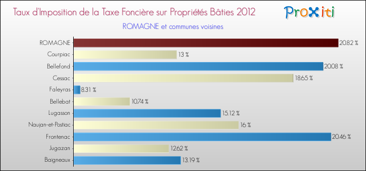 A noter : la valeur moyenne de ce taux de taxe foncière sur le bâti dans les communes françaises similaires à Romagne était de 11.88 %, en 2012.