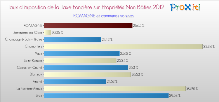 En 2012, le taux de la taxe foncière sur le non bâti vôté par le conseil municipal de Romagne était de : 26.65 %.