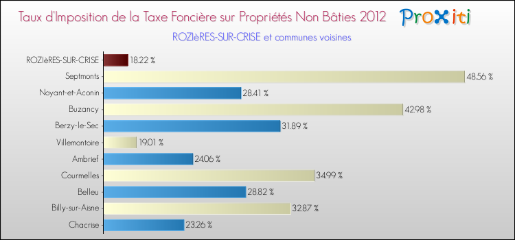 Vous trouverez ci-dessous des graphiques qui vous permettent de situer le taux de la taxe foncière sur le non bâti de Rozières-sur-Crise par rapport aux communes voisines.