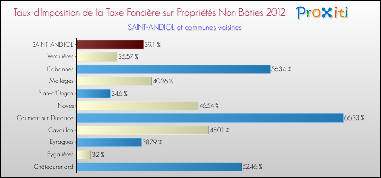 En 2012, le taux de la taxe foncière sur le non bâti vôté par le conseil municipal de Saint-Andiol était de : 39.1 %.