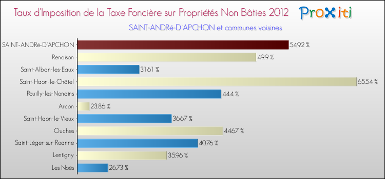 En 2012, le taux de la taxe foncière sur le non bâti vôté par le conseil municipal de Saint-André-d'Apchon était de : 54.92 %.