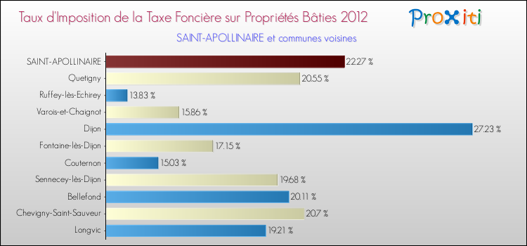En 2012, le taux de la taxe foncière sur le bâti vôté par le conseil municipal de Saint-Apollinaire était de : 22.27 %.