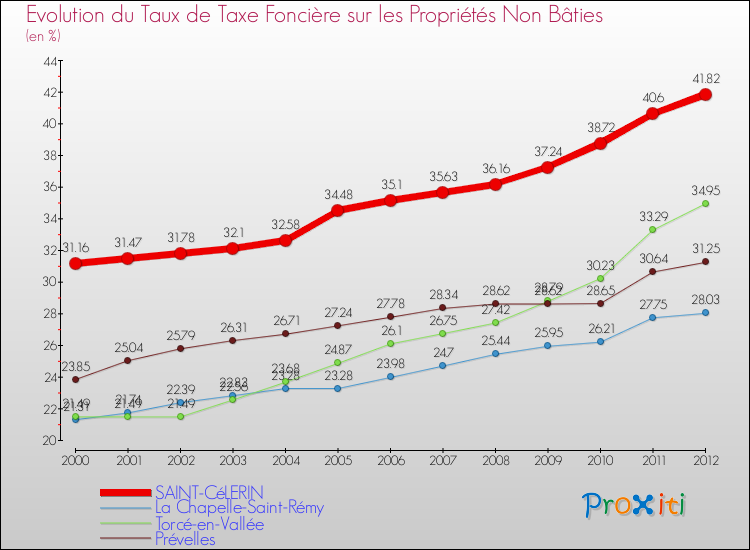 Pendant la même période, les communes françaises similaires à Saint-Célerin, ont vu leur taux de taxe foncière sur le non bâti augmenter de 15 % en moyenne entre 2000 et 2012.