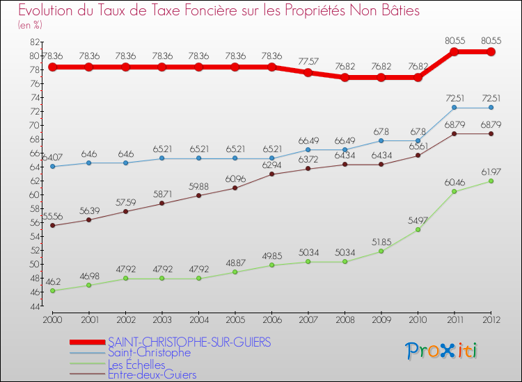 A Saint-Christophe-sur-Guiers, le taux de taxe foncière sur le non bâti a donc augmenté de 2.79 % entre 2000 et 2012.