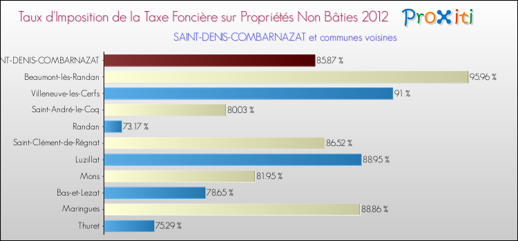 En 2012, le taux de la taxe foncière sur le non bâti vôté par le conseil municipal de Saint-Denis-Combarnazat était de : 85.87 %.