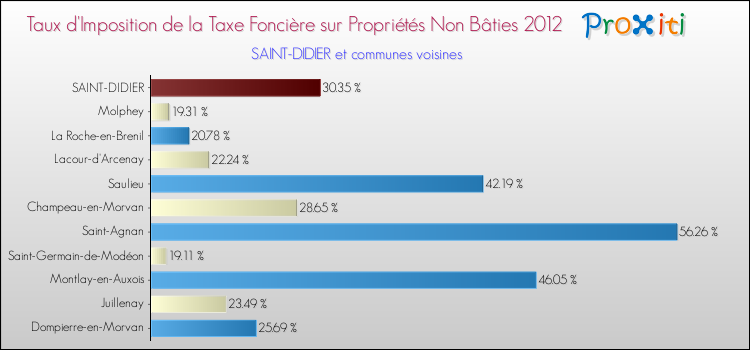 A noter : la valeur moyenne de ce taux de taxe foncière sur le non bâti dans les communes françaises similaires à Saint-Didier était de 25.48 %, en 2012.