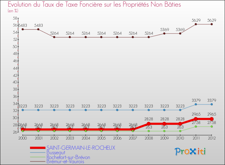 A Saint-Germain-le-Rocheux, le taux de taxe foncière sur le non bâti a donc augmenté de 11.13 % entre 2000 et 2012.