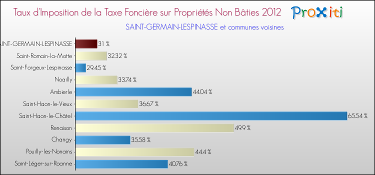 Pendant la même période, les communes françaises similaires à Saint-Germain-Lespinasse, ont vu leur taux de taxe foncière sur le non bâti augmenter de 26.66 % en moyenne entre 2000 et 2012.