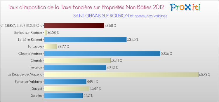 En 2012, le taux de la taxe foncière sur le non bâti vôté par le conseil municipal de Saint-Gervais-sur-Roubion était de : 48.68 %.