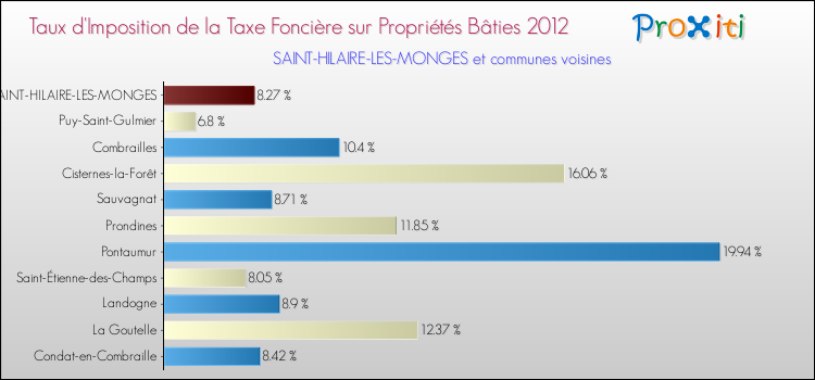 En 2012, le taux de la taxe foncière sur le bâti vôté par le conseil municipal de Saint-Hilaire-les-Monges était de : 8.27 %.
