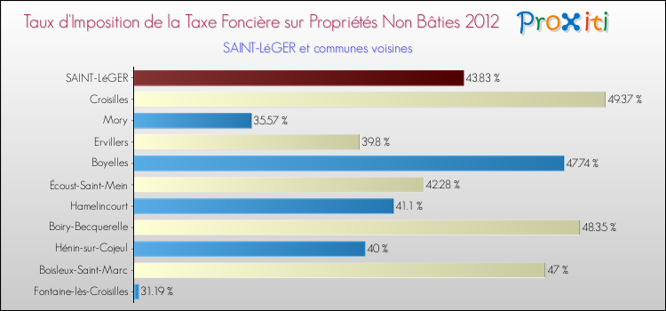 Pendant la même période, les communes françaises similaires à Saint-Léger, ont vu leur taux de taxe foncière sur le non bâti augmenter de 29.51 % en moyenne entre 2000 et 2012.