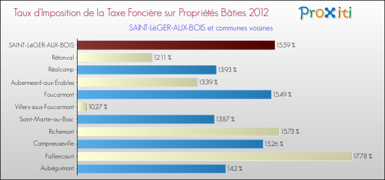 A noter : la valeur moyenne de ce taux de taxe foncière sur le bâti dans les communes françaises similaires à Saint-Léger-aux-Bois était de 13.59 %, en 2012.