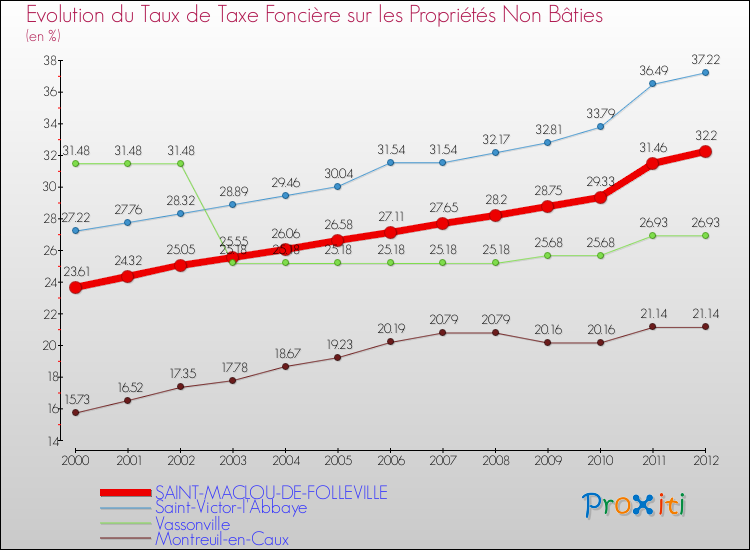 A Saint-Maclou-de-Folleville, le taux de taxe foncière sur le non bâti a donc augmenté de 36.38 % entre 2000 et 2012.