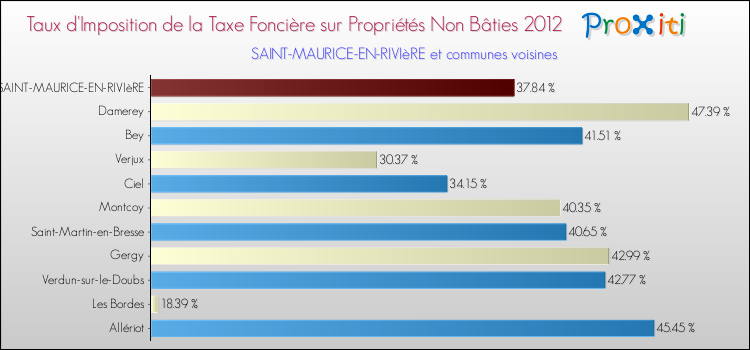 Pendant la même période, les communes françaises similaires à Saint-Maurice-en-Rivière, ont vu leur taux de taxe foncière sur le non bâti augmenter de 5.87 % en moyenne entre 2000 et 2012.