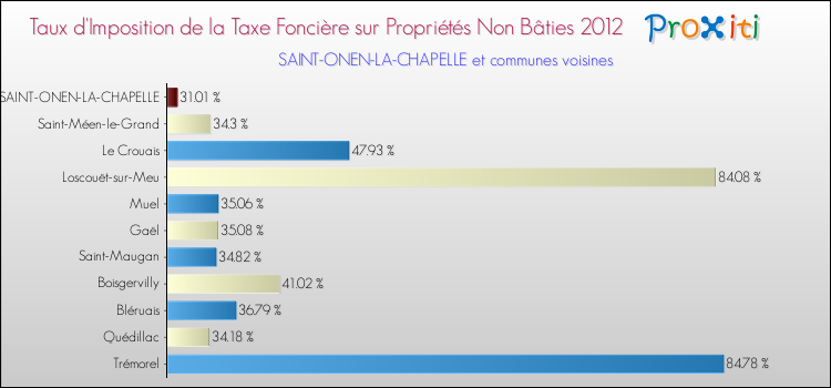 A noter : la valeur moyenne de ce taux de taxe foncière sur le non bâti dans les communes françaises similaires à Saint-Onen-la-Chapelle était de 45.84 %, en 2012.