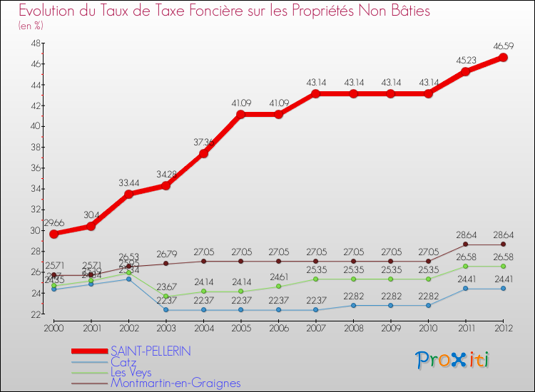 A Saint-Pellerin, le taux de taxe foncière sur le non bâti a donc augmenté de 57.08 % entre 2000 et 2012.