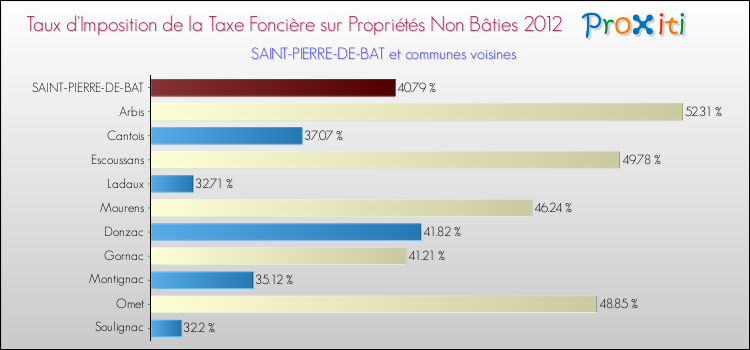 En 2012, le taux de la taxe foncière sur le non bâti vôté par le conseil municipal de Saint-Pierre-de-Bat était de : 40.79 %.