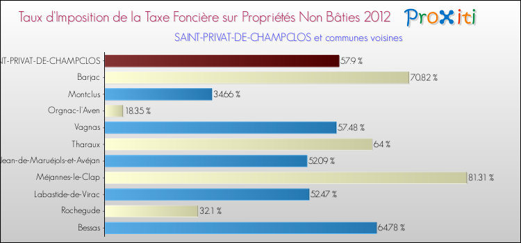 Vous trouverez ci-dessous des graphiques qui vous permettent de situer le taux de la taxe foncière sur le non bâti de Saint-Privat-de-Champclos par rapport aux communes voisines.