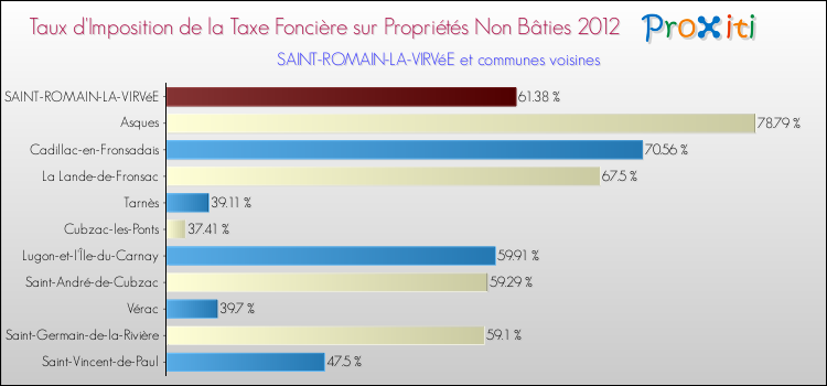 A noter : la valeur moyenne de ce taux de taxe foncière sur le non bâti dans les communes françaises similaires à Saint-Romain-la-Virvée était de 45.84 %, en 2012.