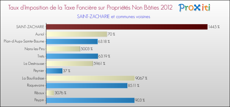 En 2012, le taux de la taxe foncière sur le non bâti vôté par le conseil municipal de Saint-Zacharie était de : 144.5 %.