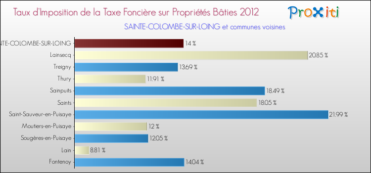 A noter : la valeur moyenne de ce taux de taxe foncière sur le bâti dans les communes françaises similaires à Sainte-Colombe-sur-Loing était de 10.09 %, en 2012.